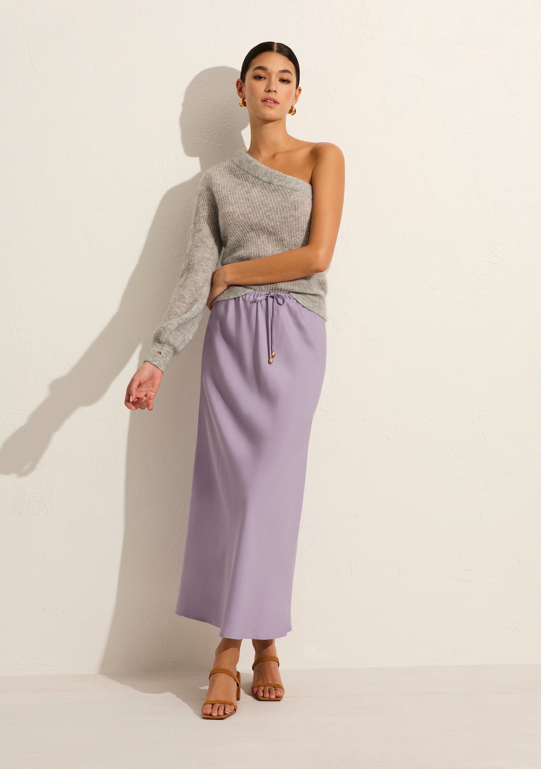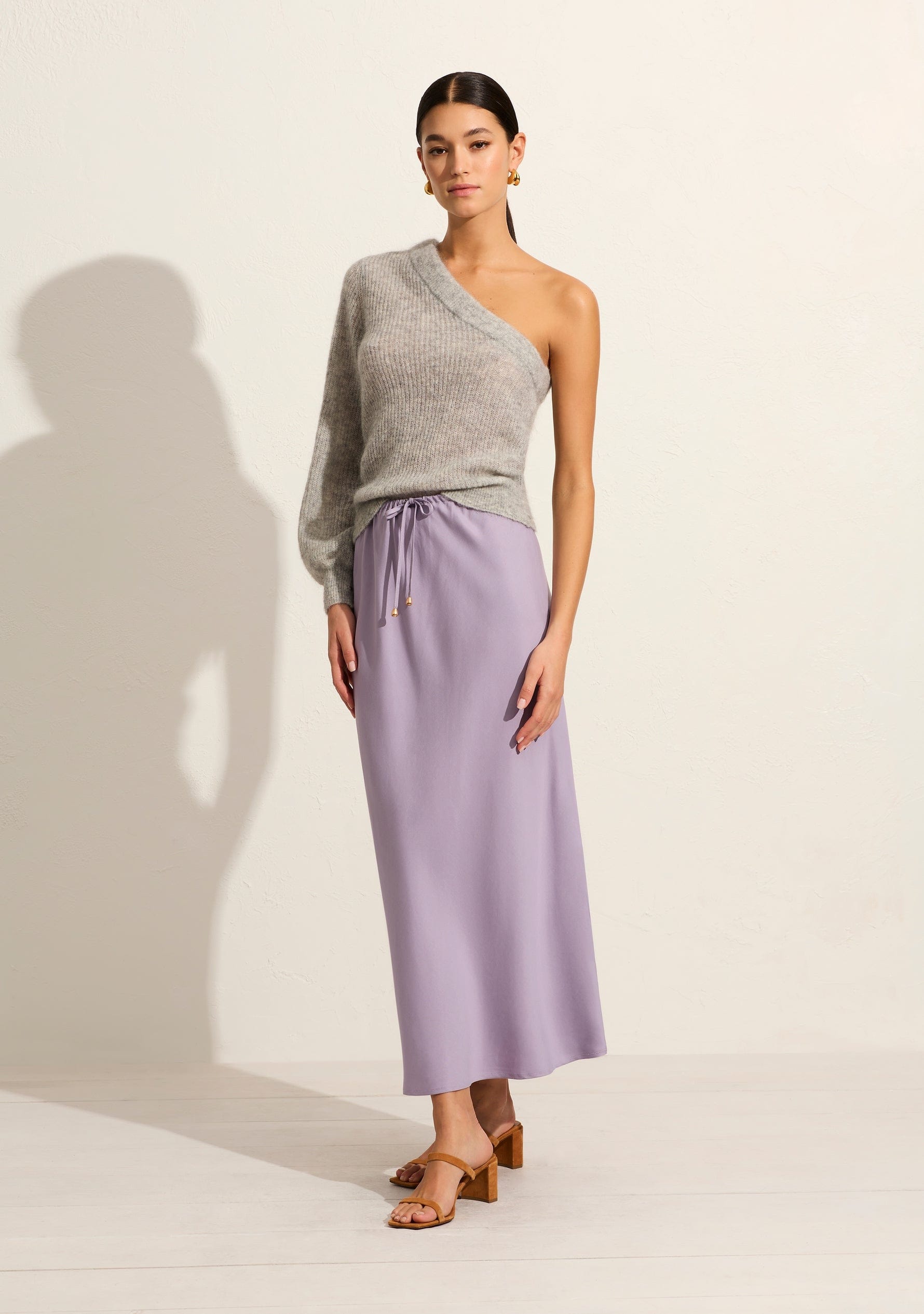 The Alexa Sweater is crafted from a mohair, wool blend in a grey marle. This fully fashioned knit offers an asymmetric neckline, one-sleeve design and rib finishings. This is an elegant addition to your knitwear and pairs beautifully with the Maeve Midi Skirt for that office-chic look.Our studio model Aude is 175cm / 5' 9” and wears a Size S
