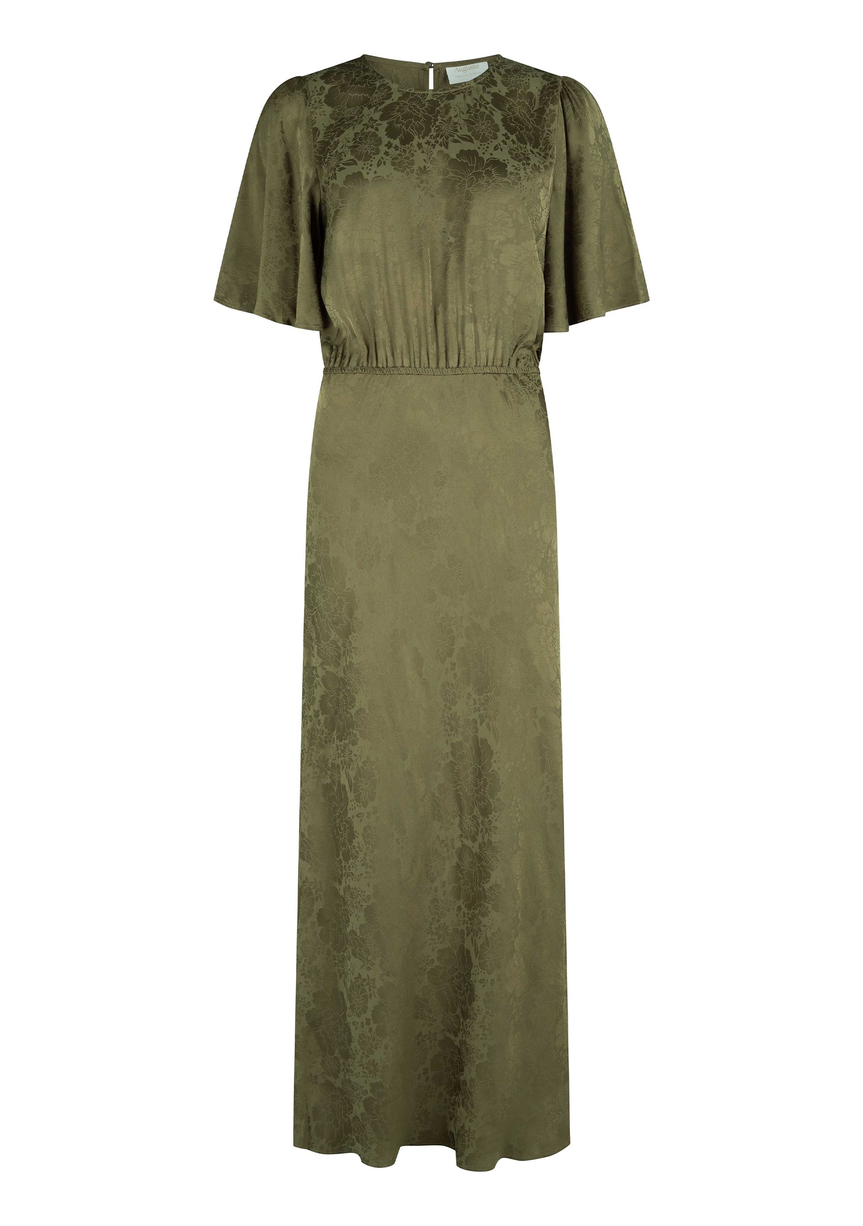 The Alexandria Maxi Dress is crafted from a silky floral viscose jacquard with a soft drape and luxurious hand feel. This flattering, feminine silhouette features elbow-length flutter sleeves, a blouson bodice, and an elasticated waist for comfort. The bias-cut skirt gently skims the body and falls to a beautifully draped hem.Our studio model Stas is 176cm / 5’ 9.5" and wears a Size S.