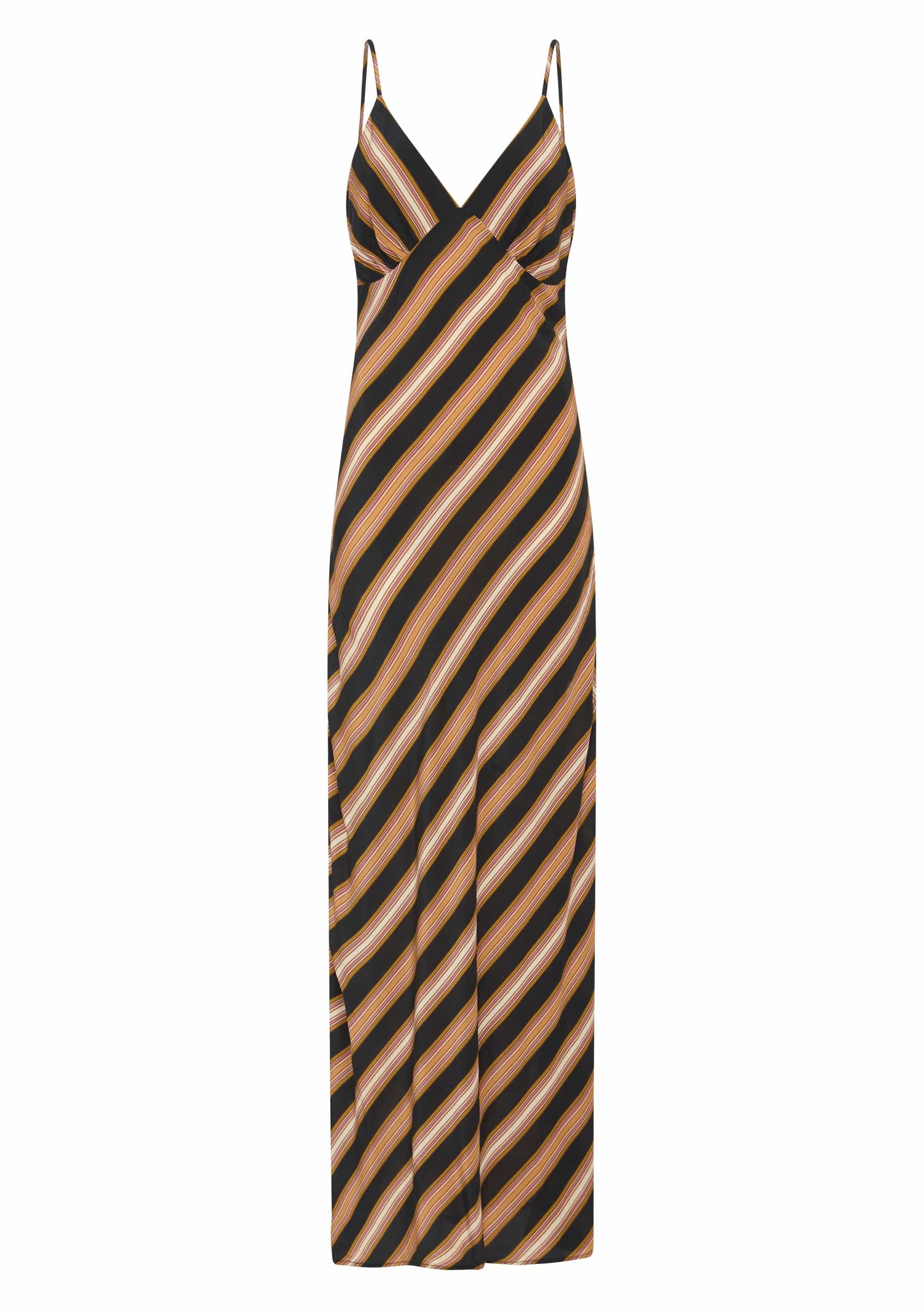 The Kinny Maxi Dress in our striking new Ashlyn Stripe is a classic slip design featuring a triangle bust detail and adjustable straps. Its flattering bias-cut silhouette conforms to your body shape, cascading elegantly to a draped hem. Available exclusively online & in-store at Auguste.