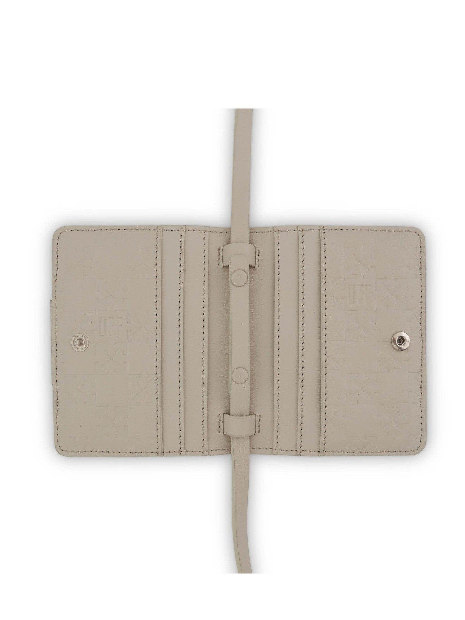 Binder cc holder on strap in off white leather with strap with signature cutout design, binder design, snap closure and multiple cc holder insideComposition: