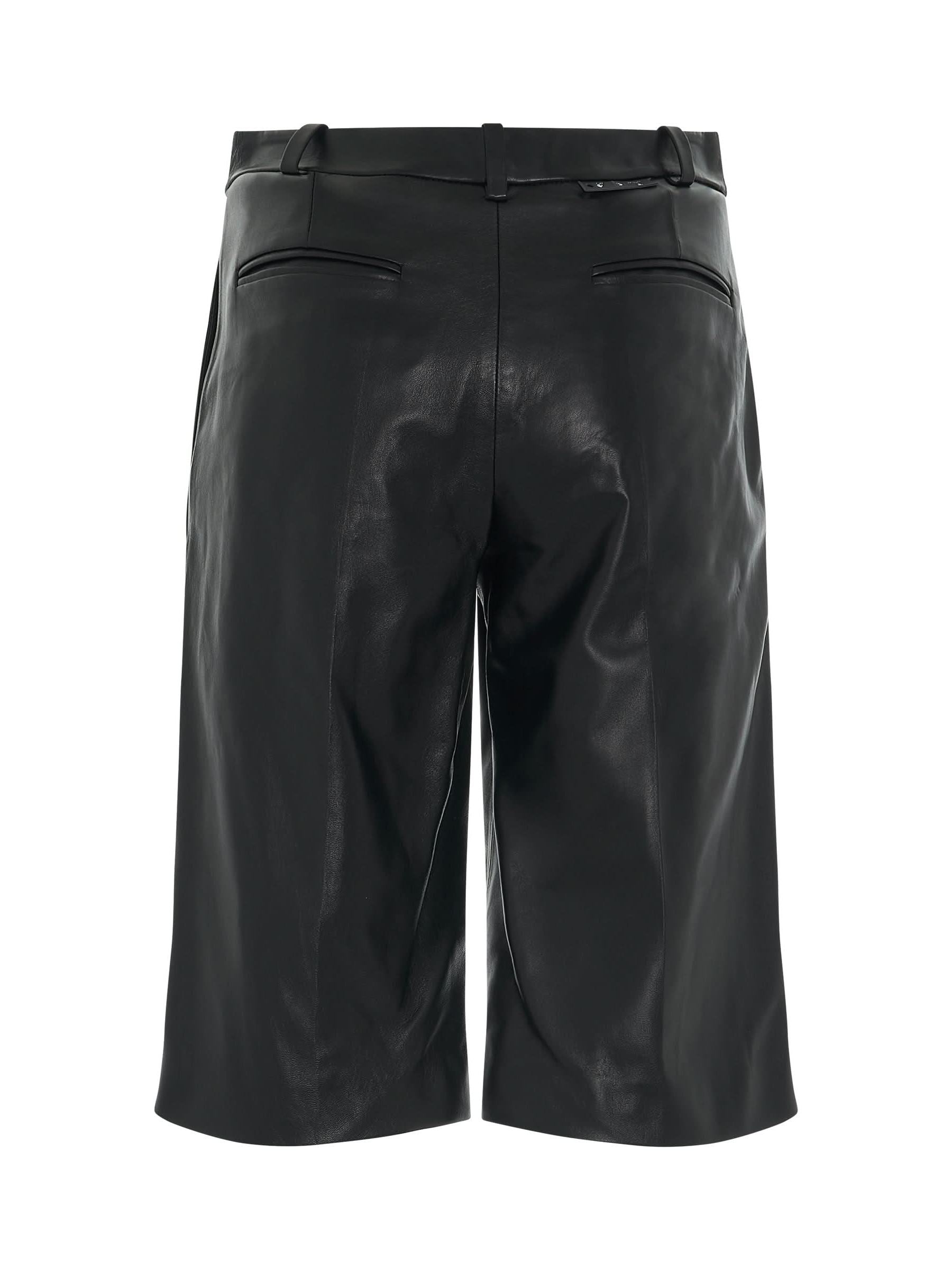 Leather formal shorts in black leather with concealed front fastening, logo print to the rear, text print to the side and pressed creaseComposition: