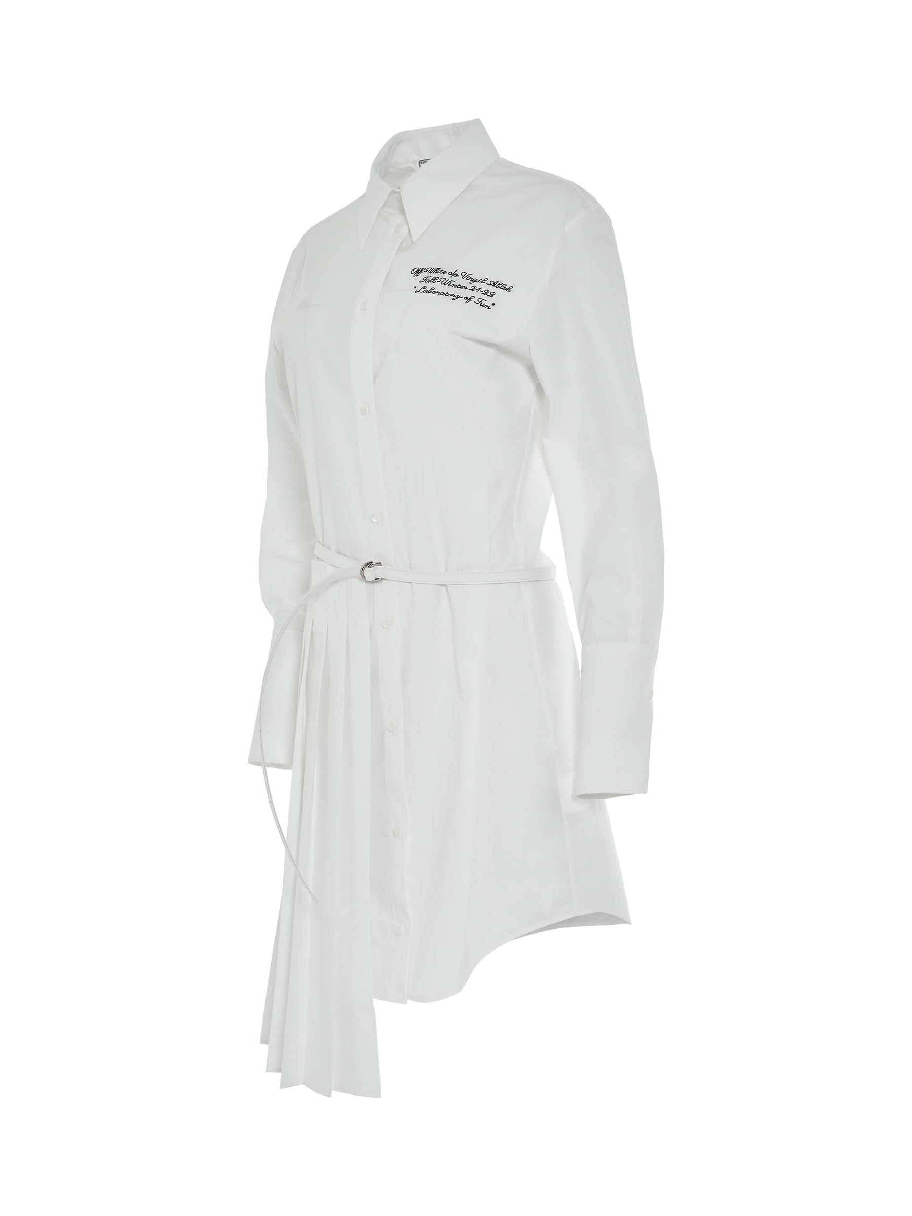 OFF-WHITE Popel Plisse Shirt Dress (White)