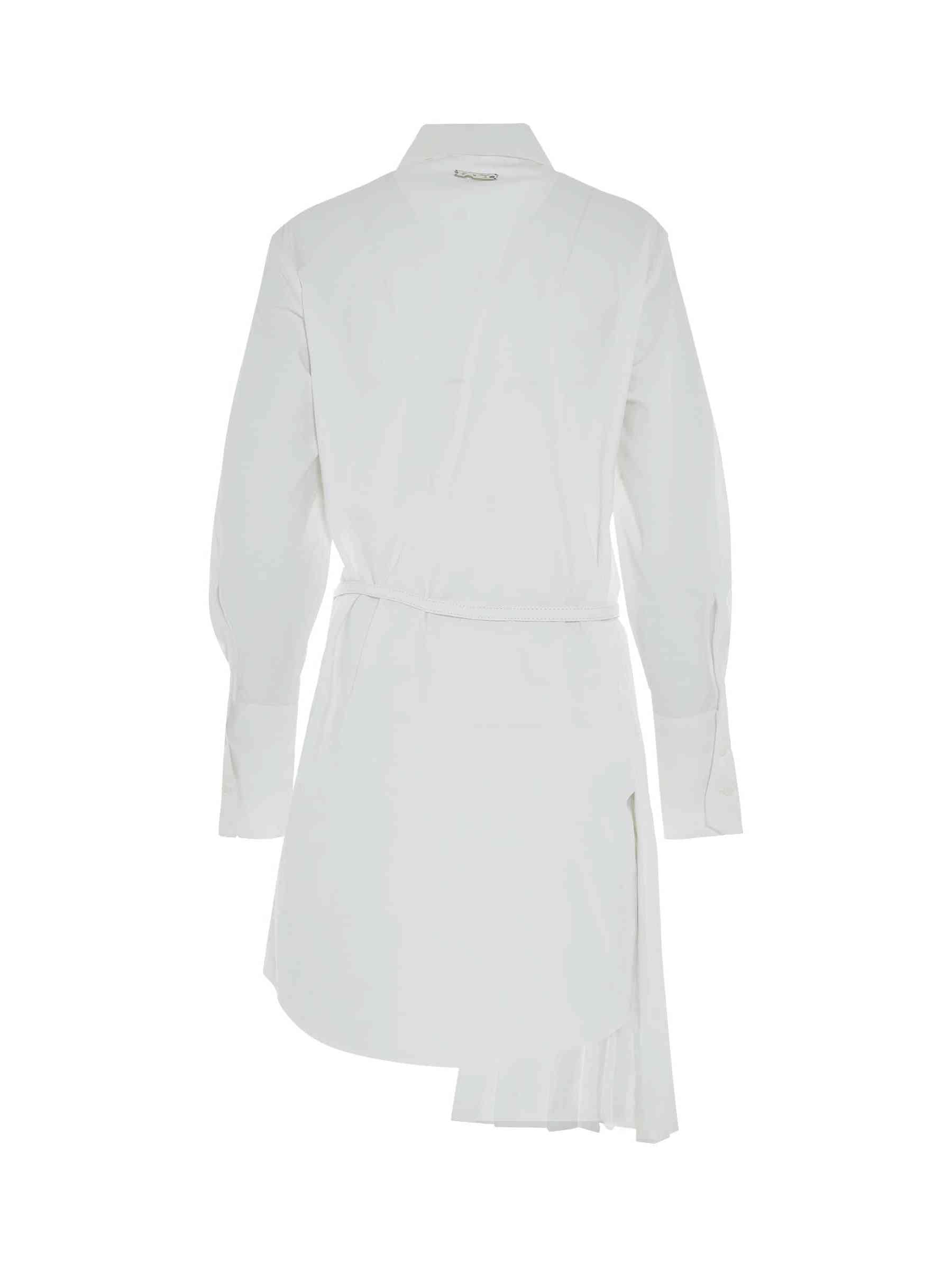 Popel plisse shirt dress in white cotton with embroidered logo at the chest, pointed flat collar, long sleeves and front button fasteningComposition: